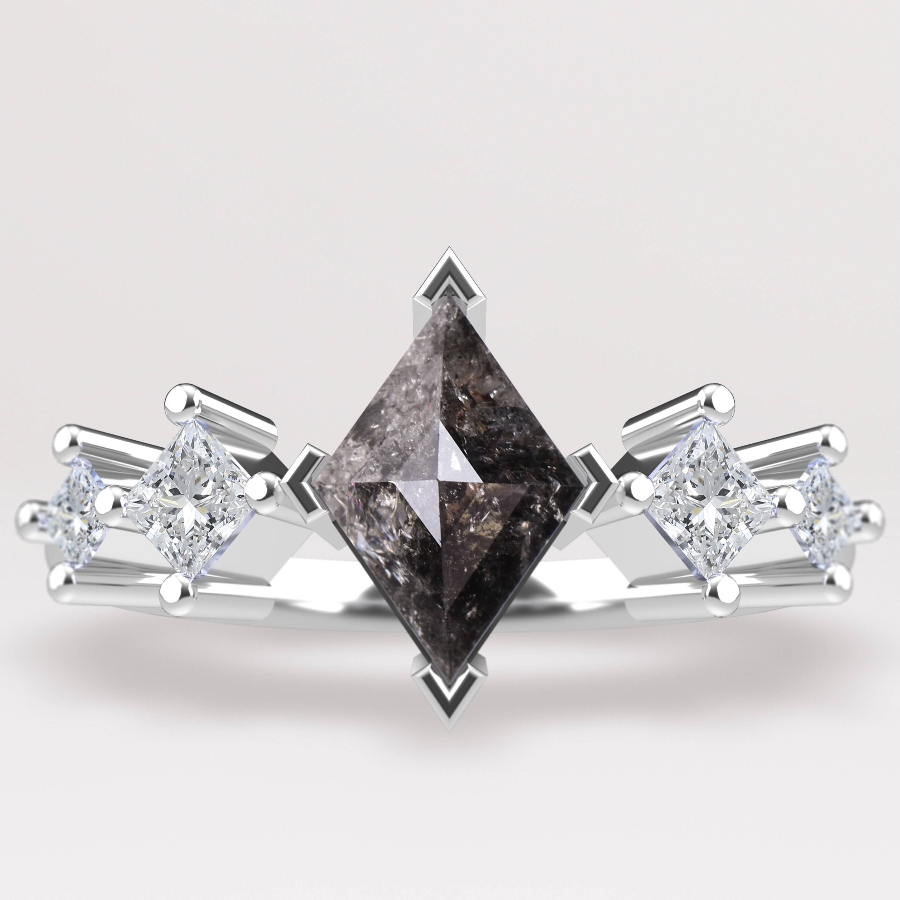There will be no further explanation. There will just be reputation.The Bonnie ring had to be bold, and stand out. The Reputation album was Taylor’s way of taking back the narrative from the toxic media industry, and breaking down the walls (or suitcases) that had kept her in hiding for nearly 3 years. The Reputation ring includes a stunning kite cut deep smokey salt and pepper diamond.