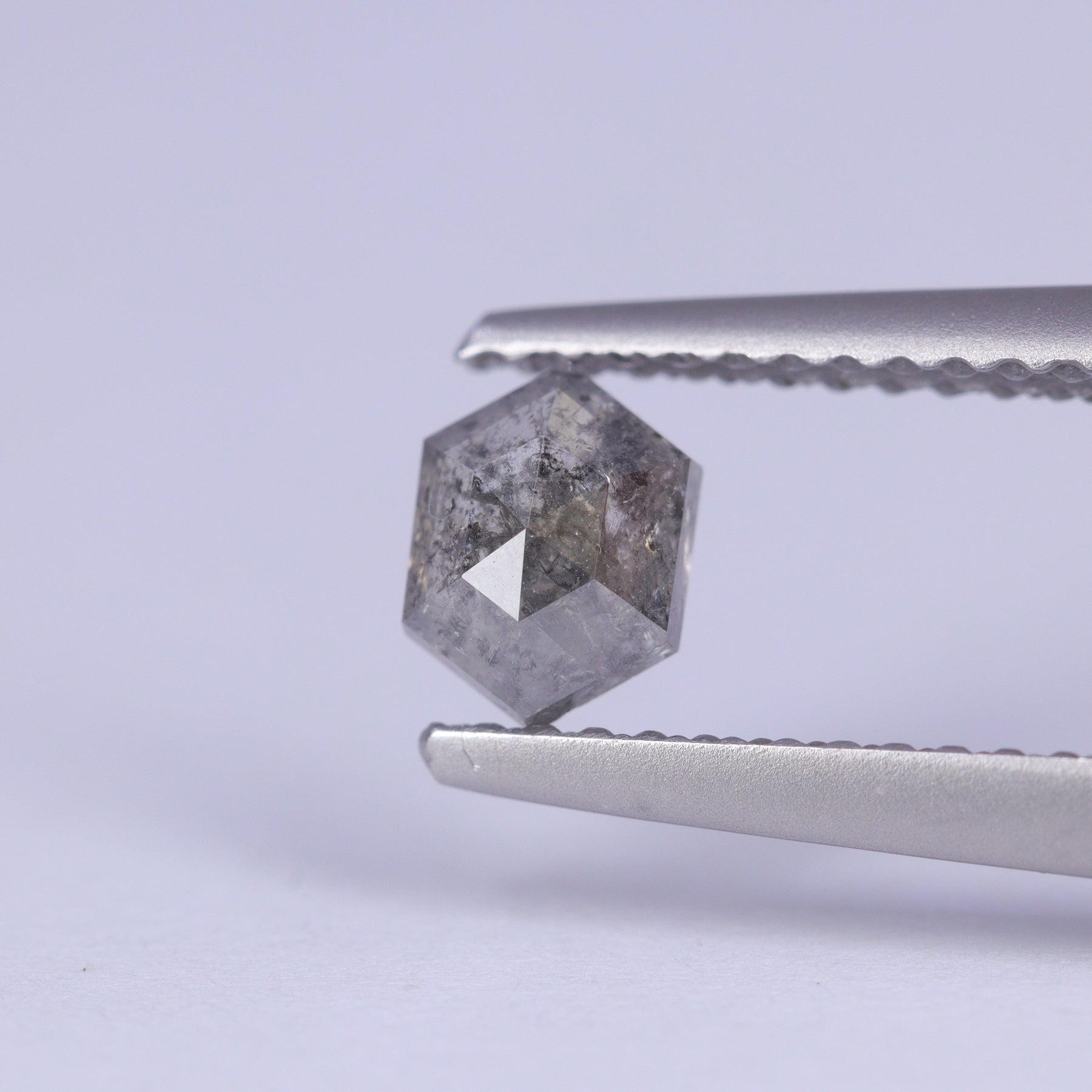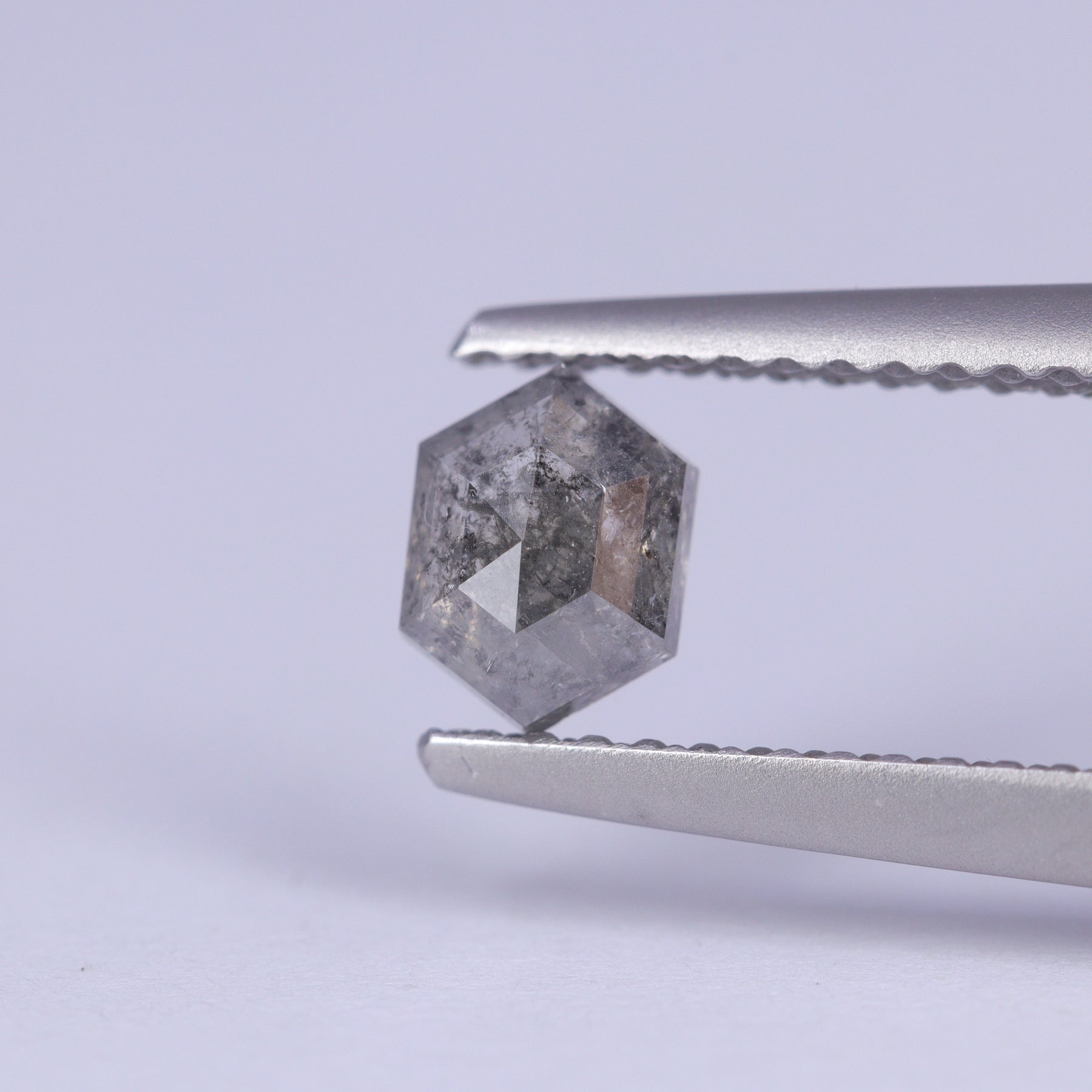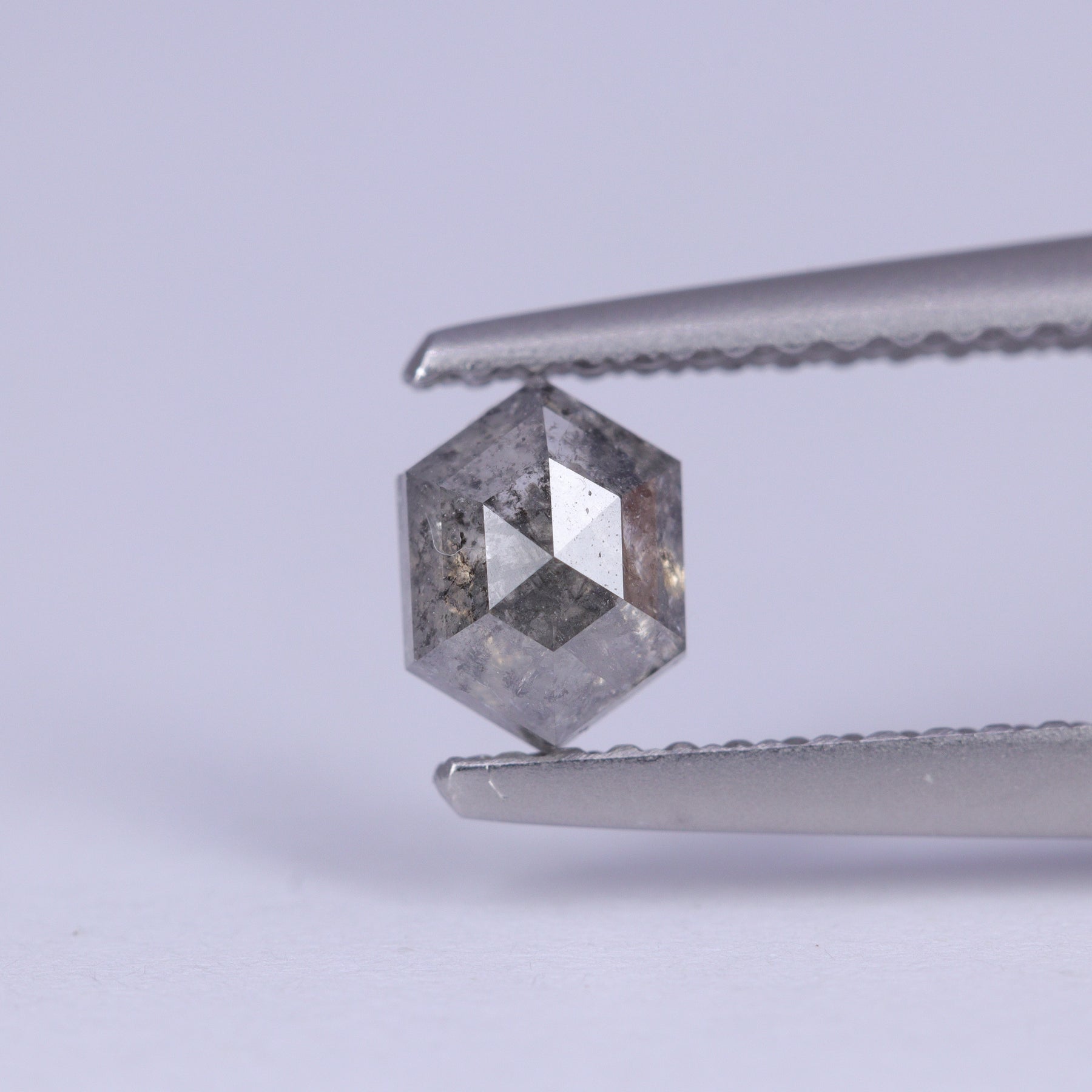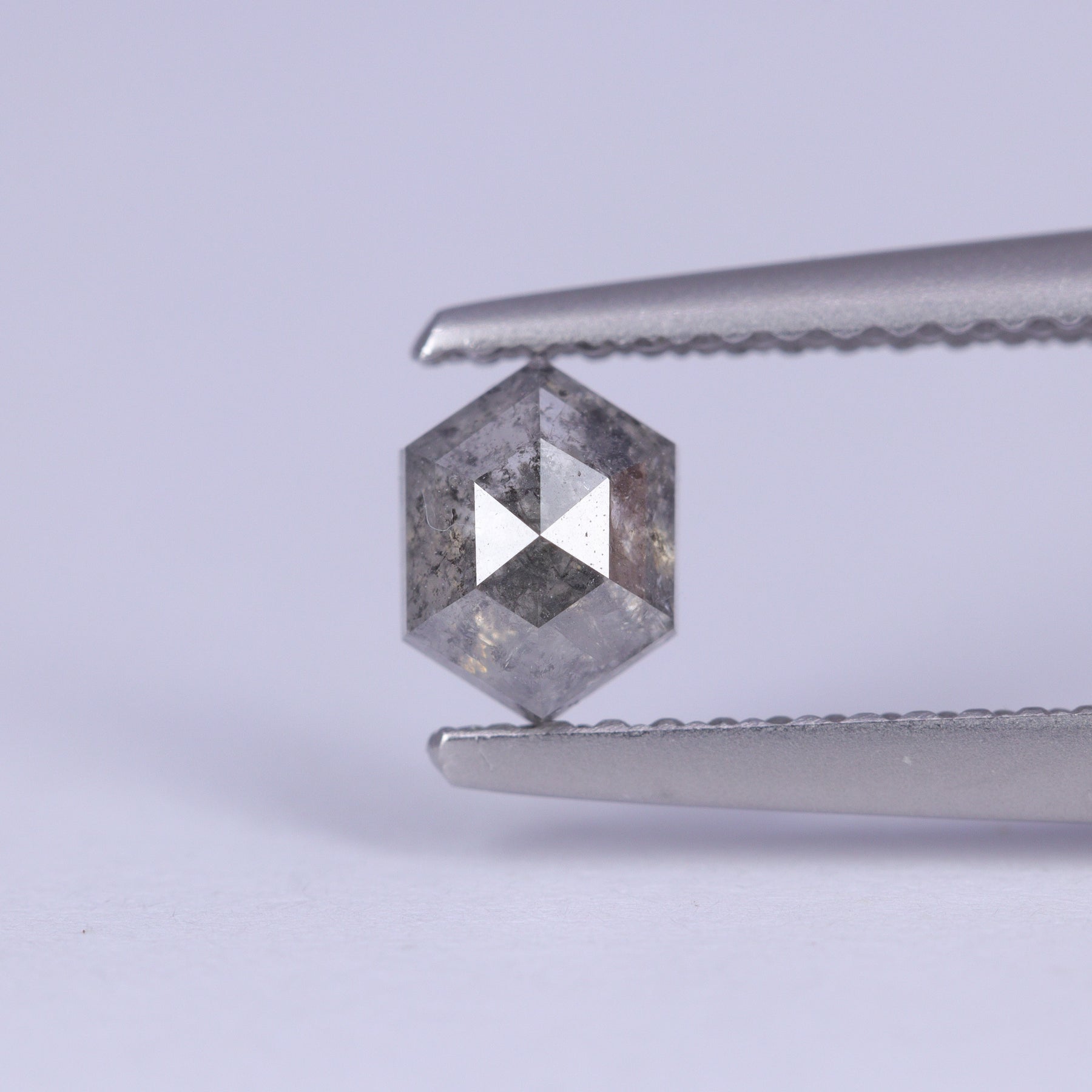 - 0.57ct Elongated Hexagon Rose Cut Salt and Pepper Diamond