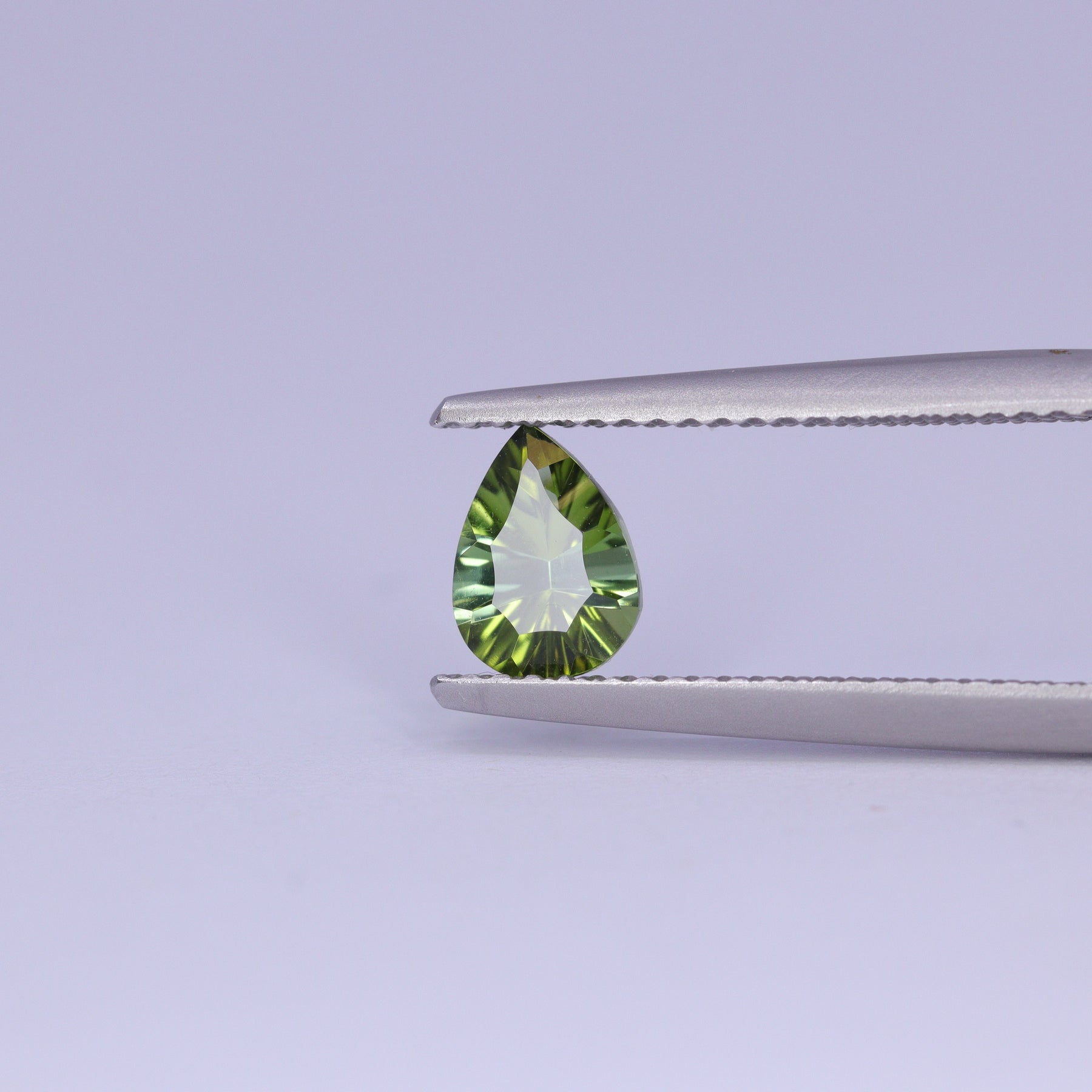 - 0.67ct Pear Cut Green Optix Concave Tourmaline