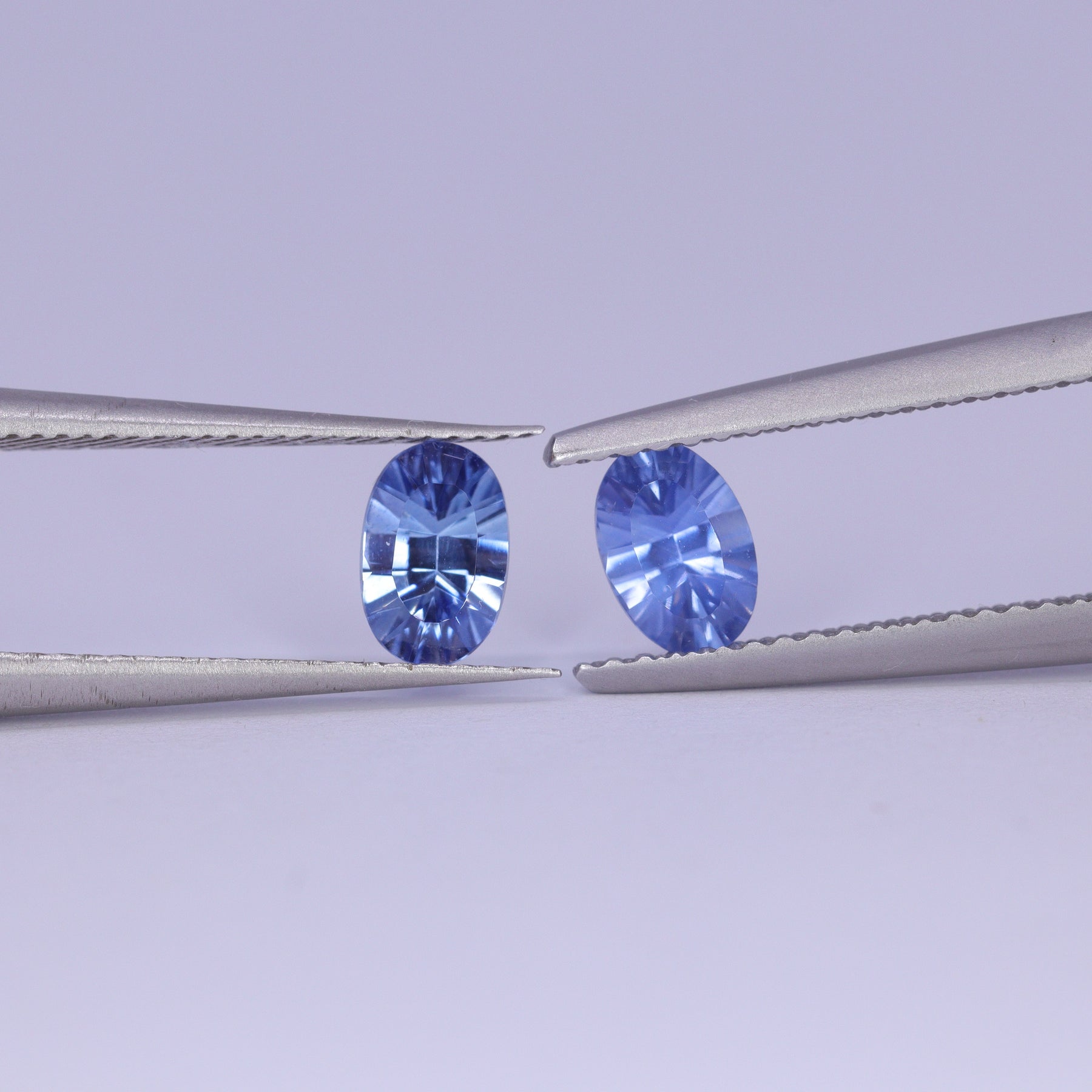 - Pair of Oval Cut Blue Optix Concave Sapphires, 0.55ct each