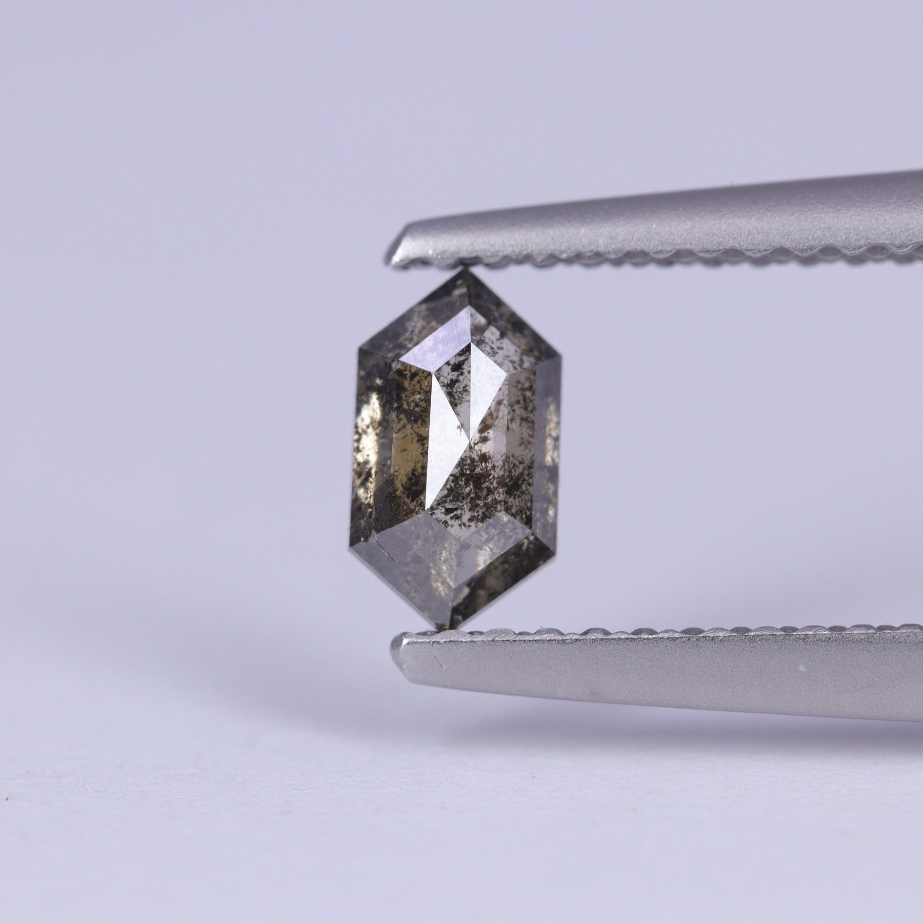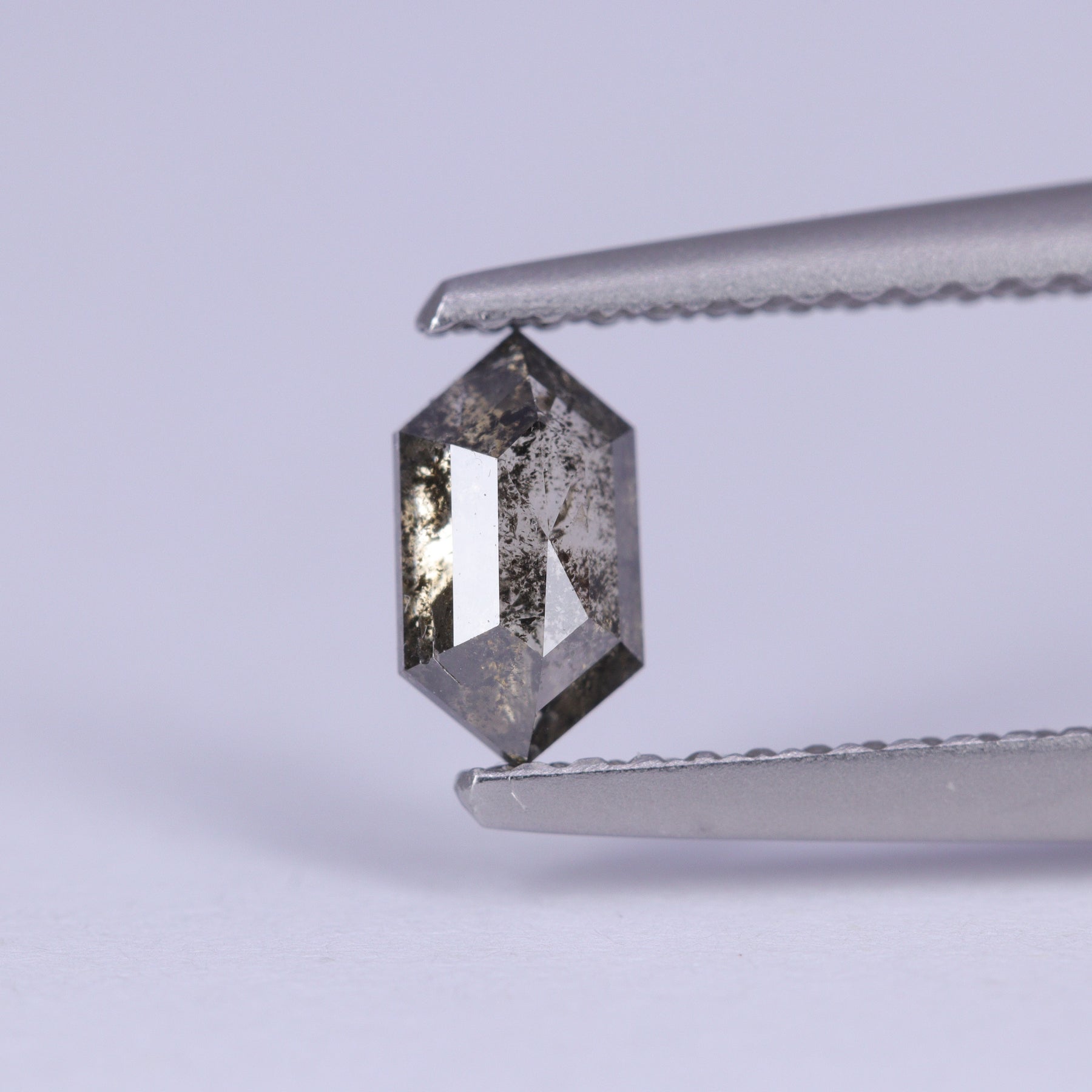 - 0.55ct Elongated Hexagon Rose Cut Salt and Pepper Diamond