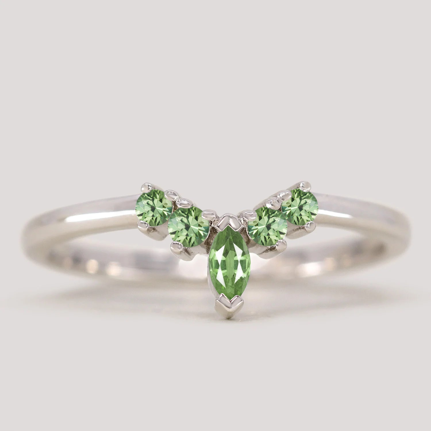 Winnie - Marquise Petite Tiara Style Green Sapphire Ring - Made-To-Order