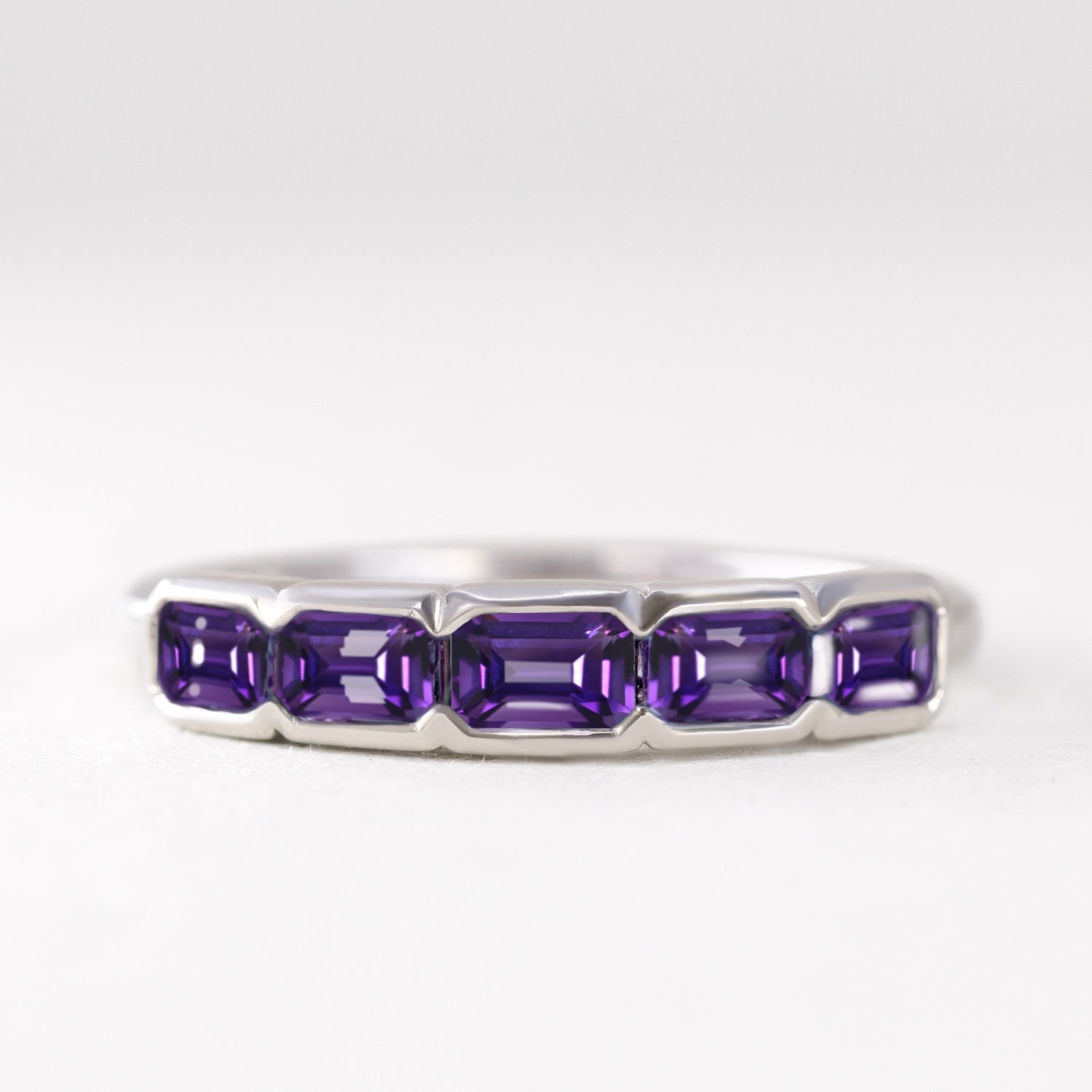 Lavender - Emerald Cut Amethyst 5 Stone Eternity Dress Ring