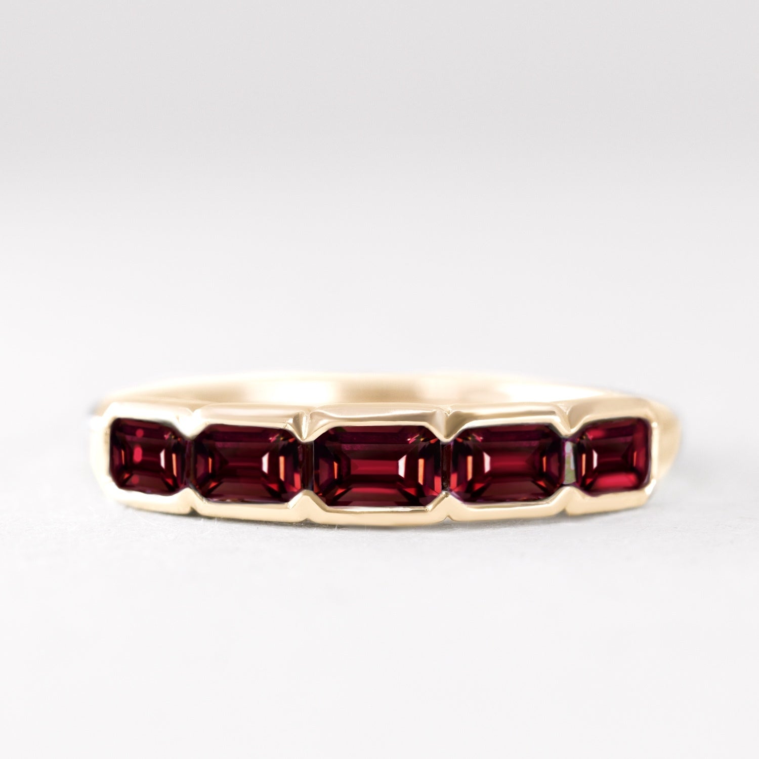 Poppy - Emerald Cut Garnet 5 Stone Eternity Dress Ring