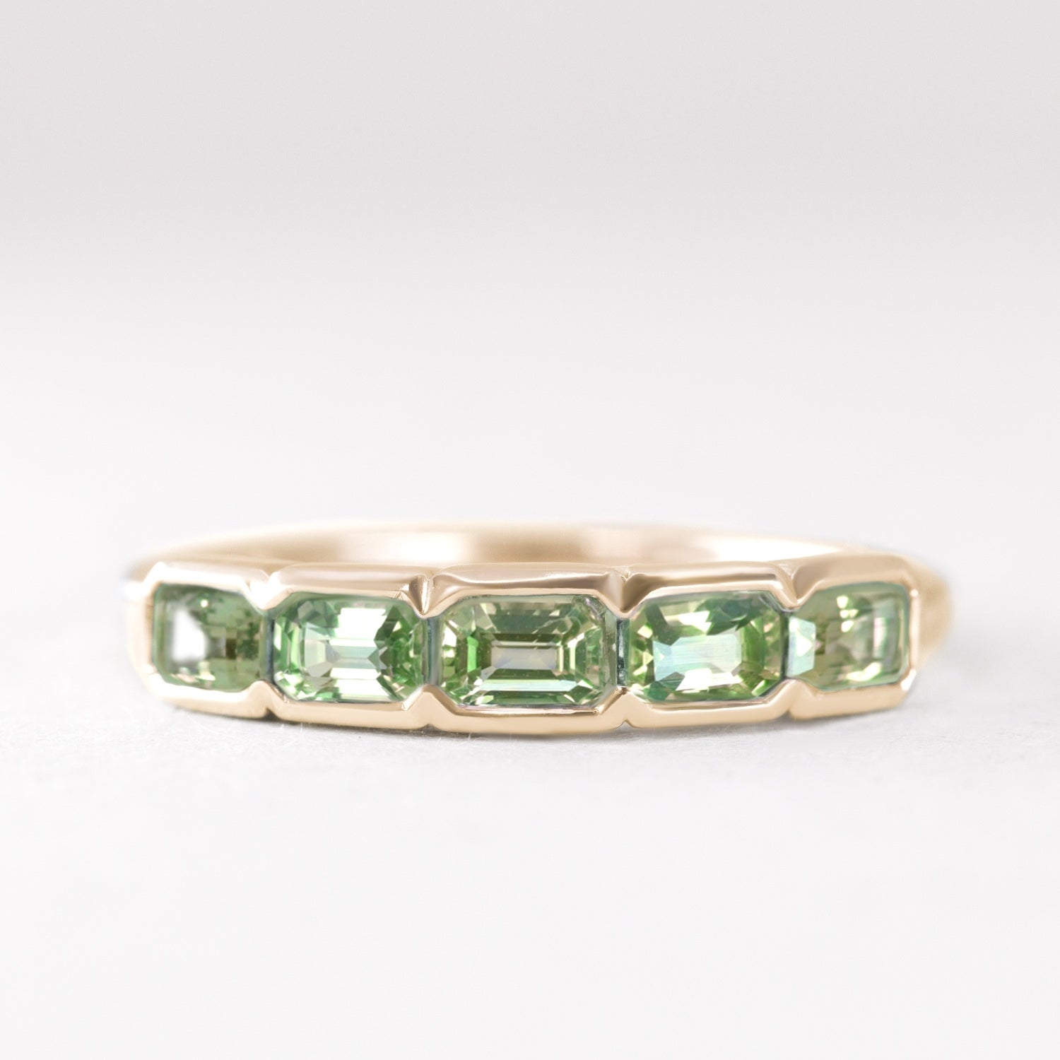 Sage - Emerald Cut Green Sapphire 5 Stone Eternity Dress Ring