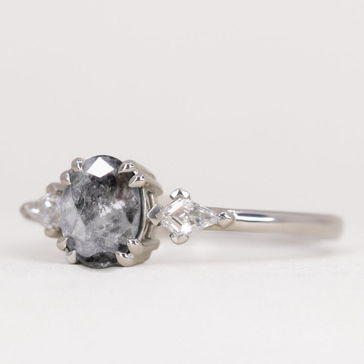 Dahlia - Oval Cut Salt and Pepper Diamond Trilogy Engagement Ring