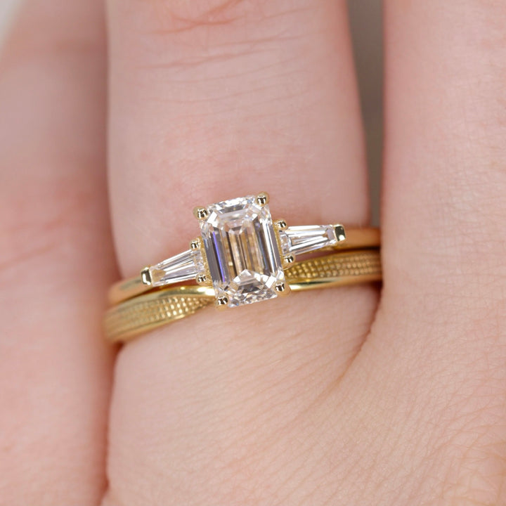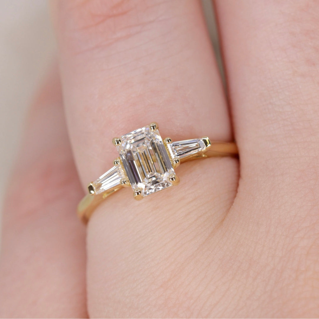 Harper - Emerald Cut Lab Grown Diamond Art Deco Trilogy Engagement Ring