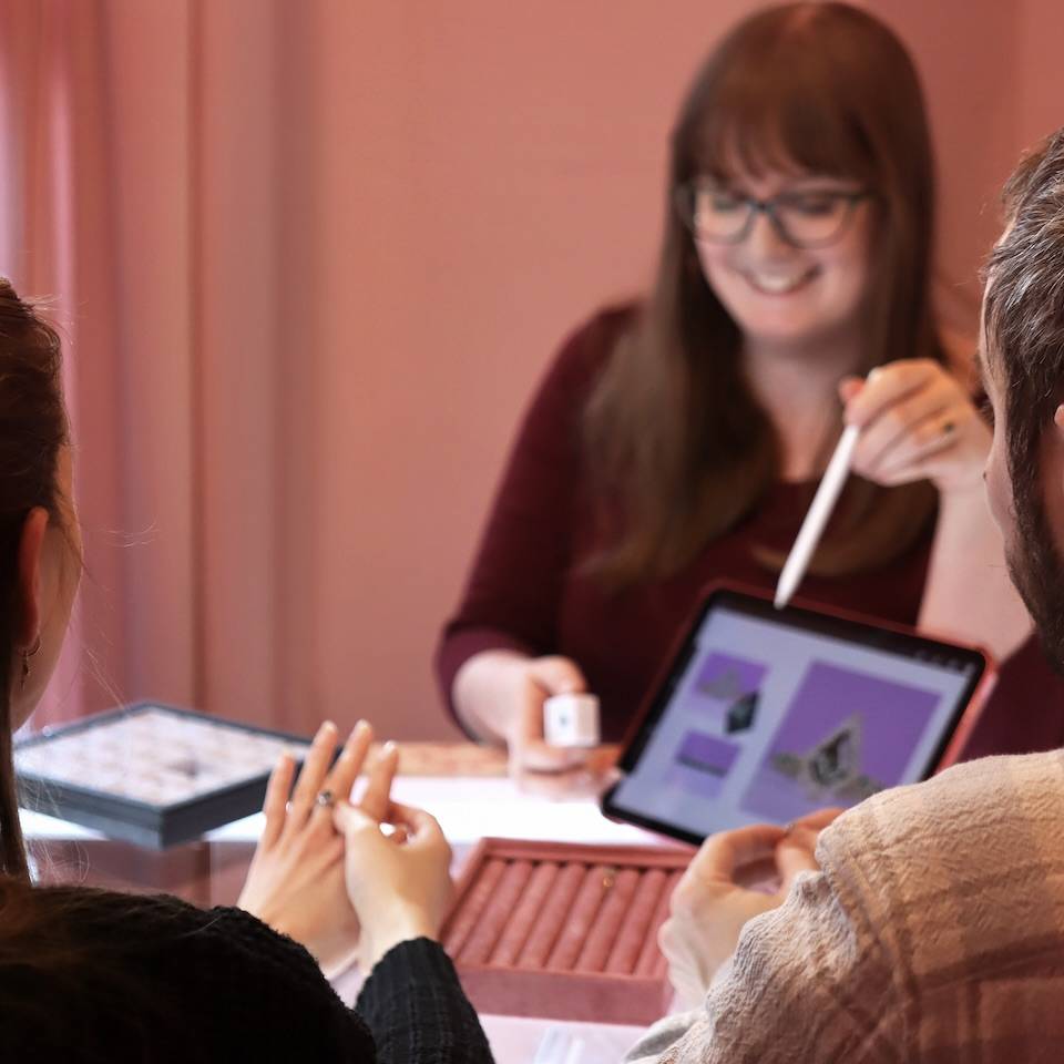 Our consultations are different lengths depending on which appointment type you choose - from 30 minutes up to 90 minutes. All virtual consultations are 30 minutes, but this doesn't mean you can't book a follow up consultation if you feel like you have more questions! Each appointment type should have plenty of time to discuss all your ideas and/or try on all the sparkly things, as we've carefully tailored our consultation times to ensure you're not rushed but we can also accommodate as many of our lovely customers as possible!