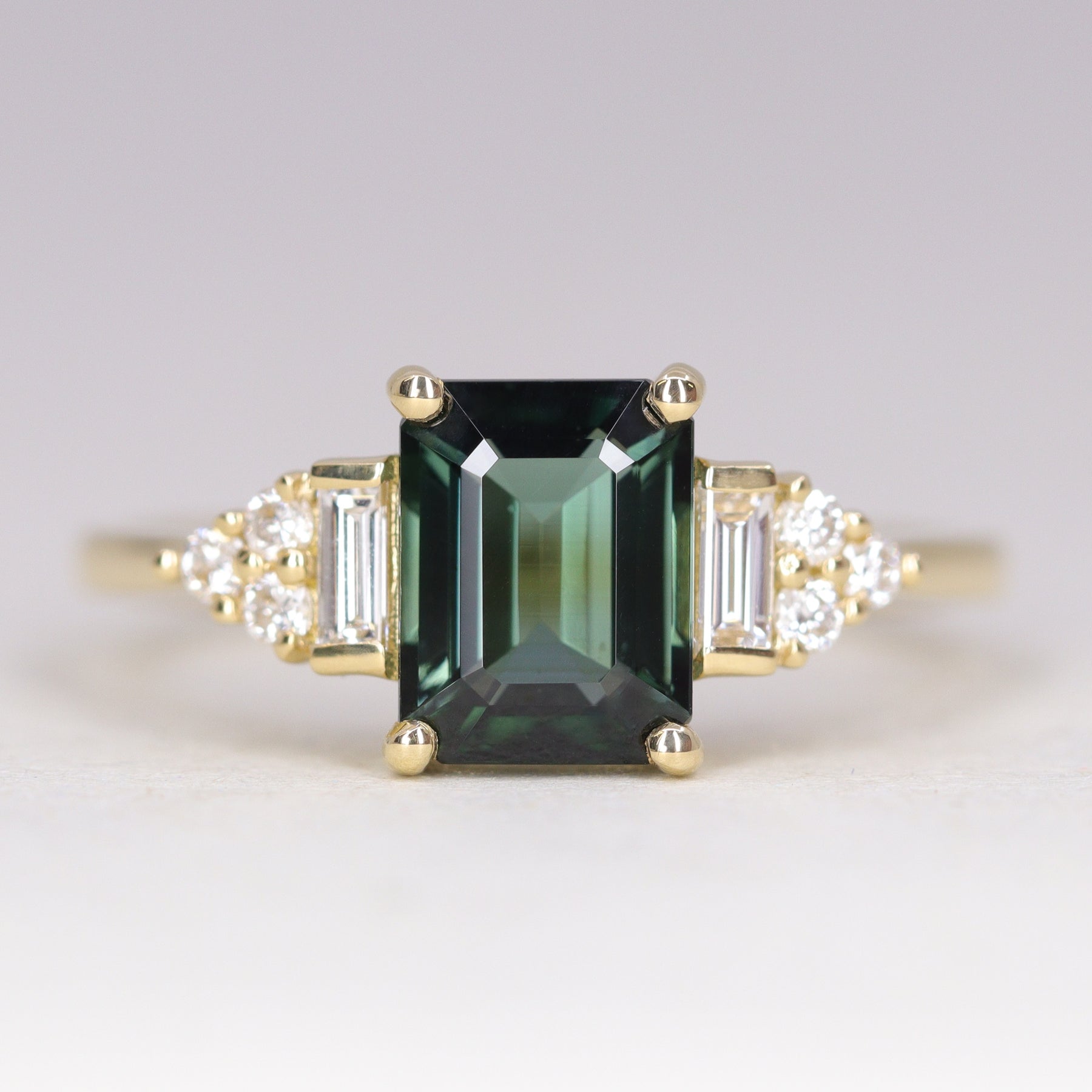 Arden - Emerald Cut Green Tourmaline Art Deco Engagement Ring - Ready-to-Wear