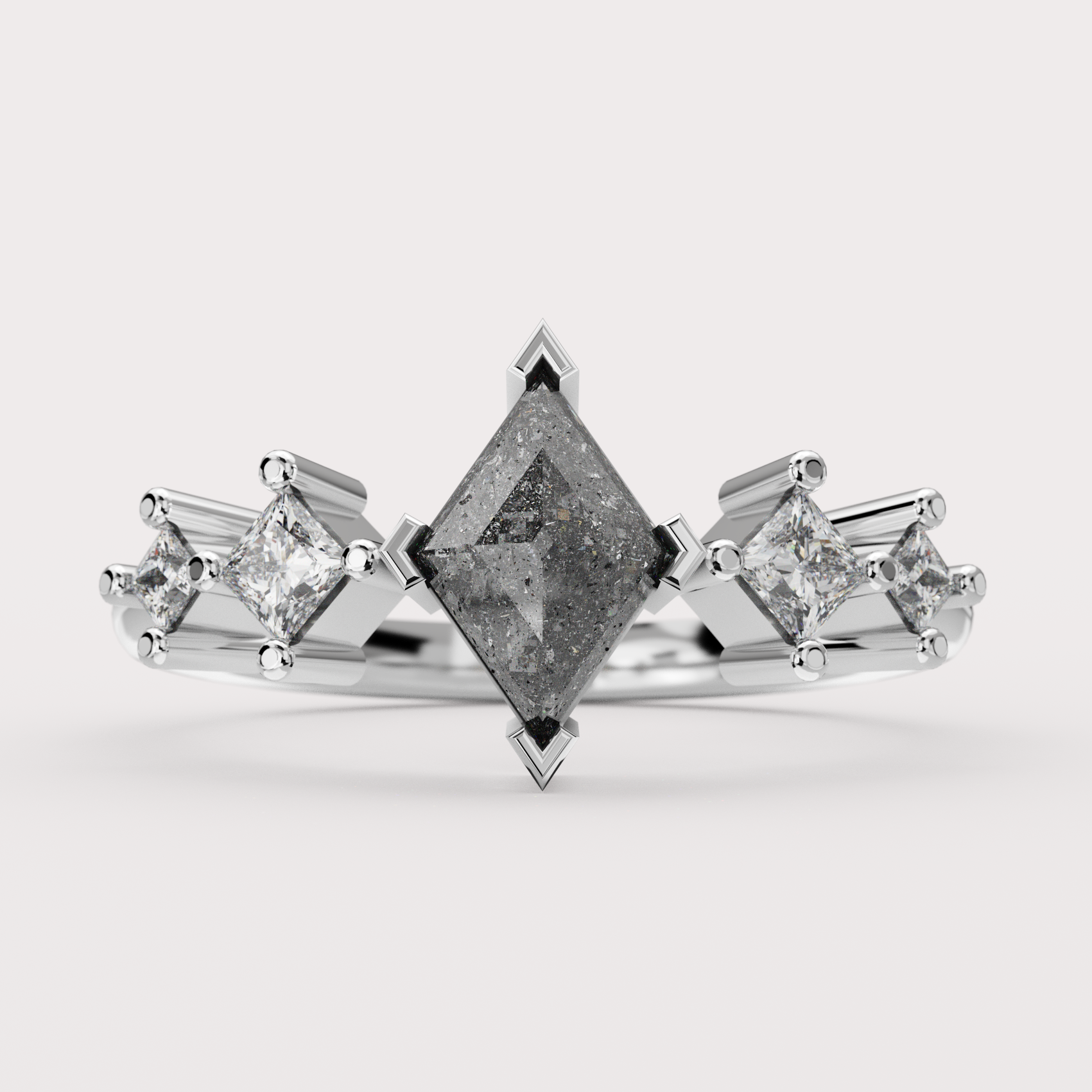 Bonnie - Kite Salt & Pepper Diamond Unique Custom Engagement Ring